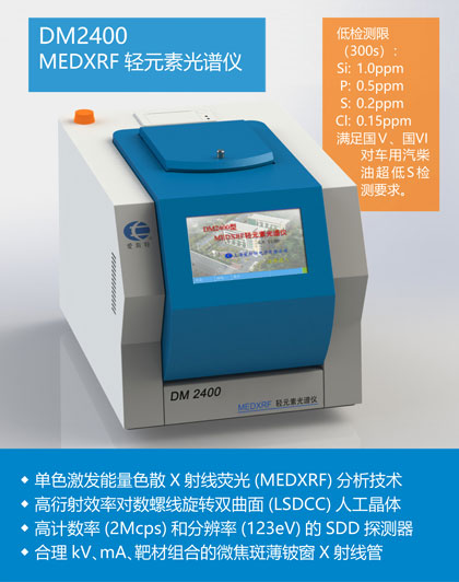 完全依据ASTM D 7220-12的DM2400S/Cl型MEDXRF微量测硫氯仪采用单色激发技术,能快速、准确、精确地分析燃料中的超低S。是实验室和工厂进行燃料中的超低S分析的完美 ...更多